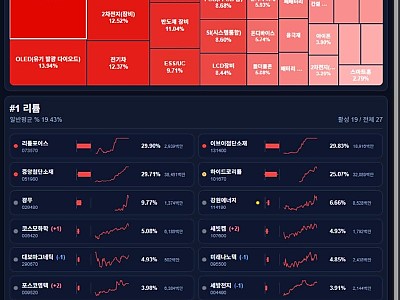 오전장 주도테마 대장주 요약 2026년 4월 21일 ( 텍스트 버전은 이미지 하단에 ... ) *** 출처 : 테마랩 테마순위 ----------- * 1 리튬 : 평균 19.98% ===============…
