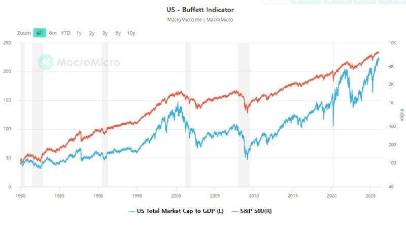 전 미래예측은 불가능하며 단지 확률만 말할수 있다고 봅니다. 확률도 몇프로이다. 라고 단정적으로 말하는건 제 수준으로는 어려운거죠. 다만 상당히 미국 주식이 고평가 되어 있으며 조정,하락 확률이 높다 라고 말하는건 거짓이 아니라고 생각합니다.  현재 버핏지수는 223인데 이건 미국 역사상 최대치입니다. 그래서 그런지 버핏,버크셔도 현금을 막대하게 쌓아두고 있네요. 한국의 버핏지수는 119 입니다만, 아무래도 미국의 영향을 안받을수가 없으니까요.  https://gookjang.com/buffet-index