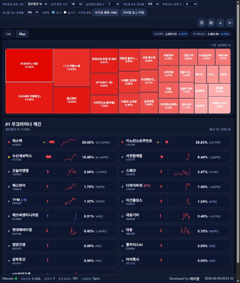 오전장 주도테마 대장주 요약 2026년 4월 9일