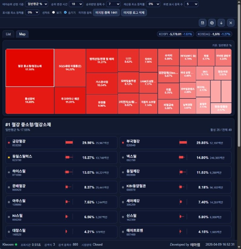 장마감 주도테마 대장주 요약 2026년 4월 9일
