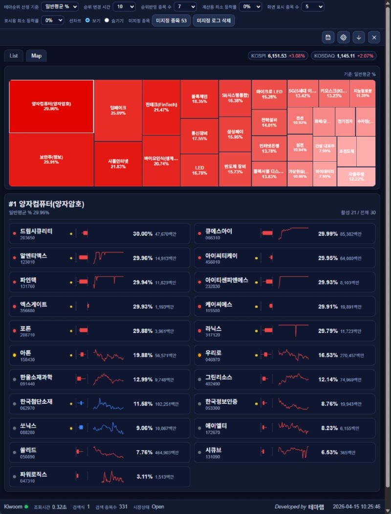 오전장 주도테마 대장주 요약 2026년 4월 15일