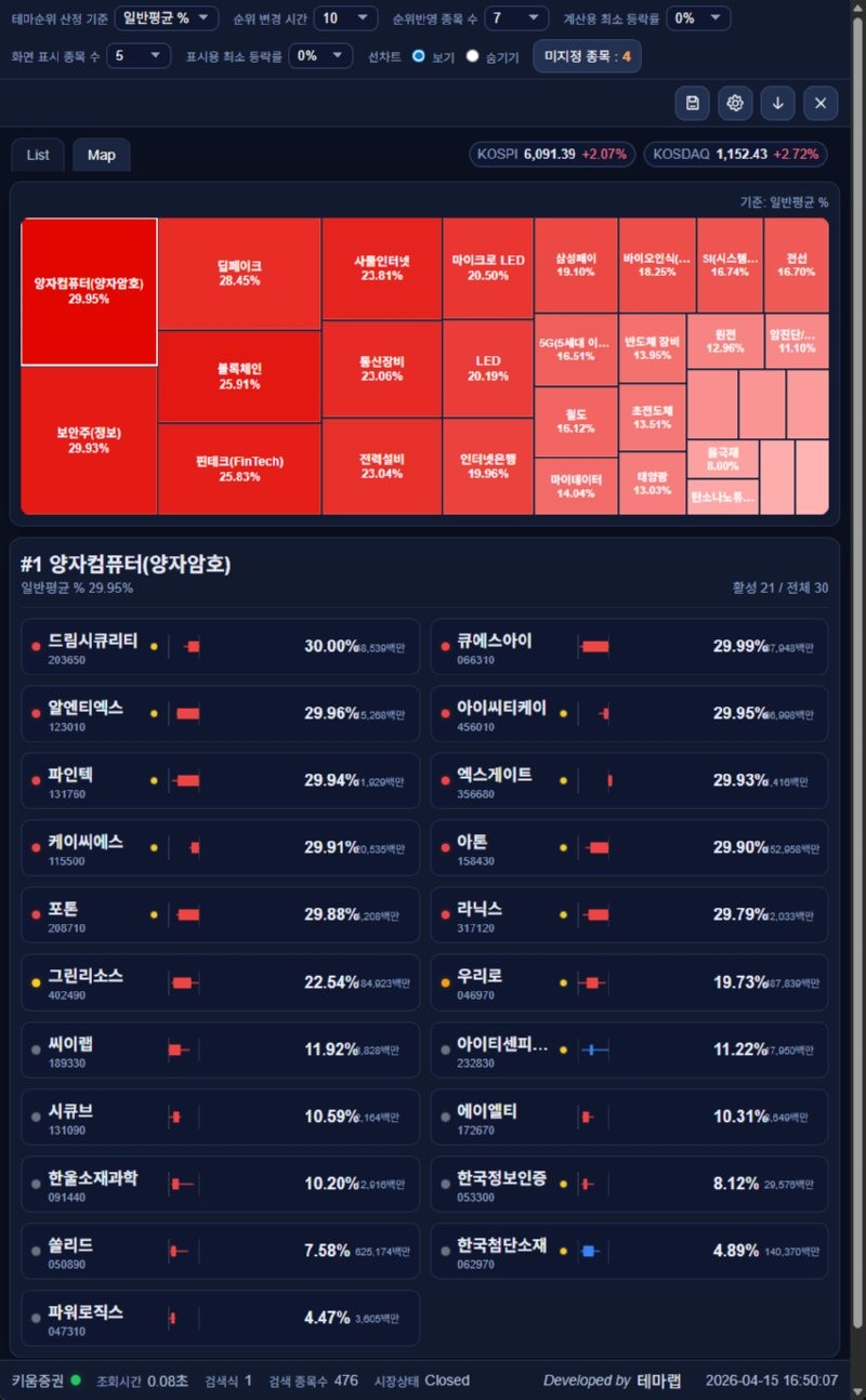 장마감 주도테마 대장주 요약 2026년 4월 15일