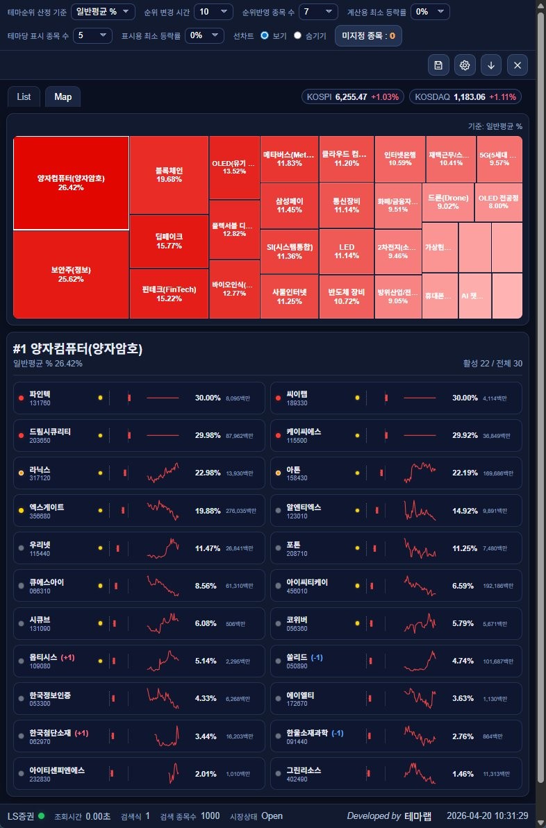 오전장 주도테마 대장주 요약 2026년 4월 20일