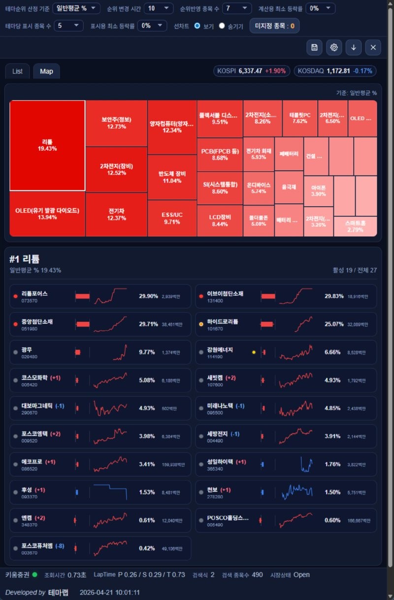 오전장 주도테마 대장주 요약 2026년 4월 21일