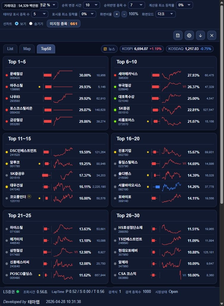 오전장 주도테마 대장주 요약 2026년 4월 28일
