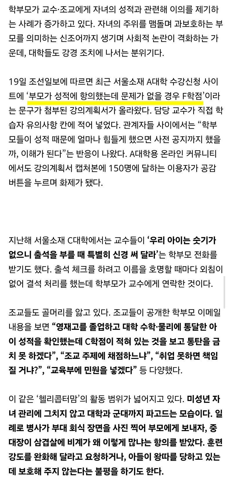 “똑똑한 우리 아들 성적이 왜 이래?”…더는 못 참겠다는 대학들 ‘부모 항의 시 F’