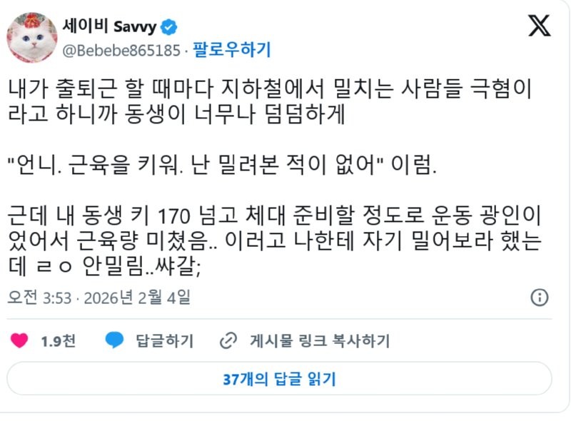지하철서 사람들한테 밀려서 힘들다고 했더니 여동생이