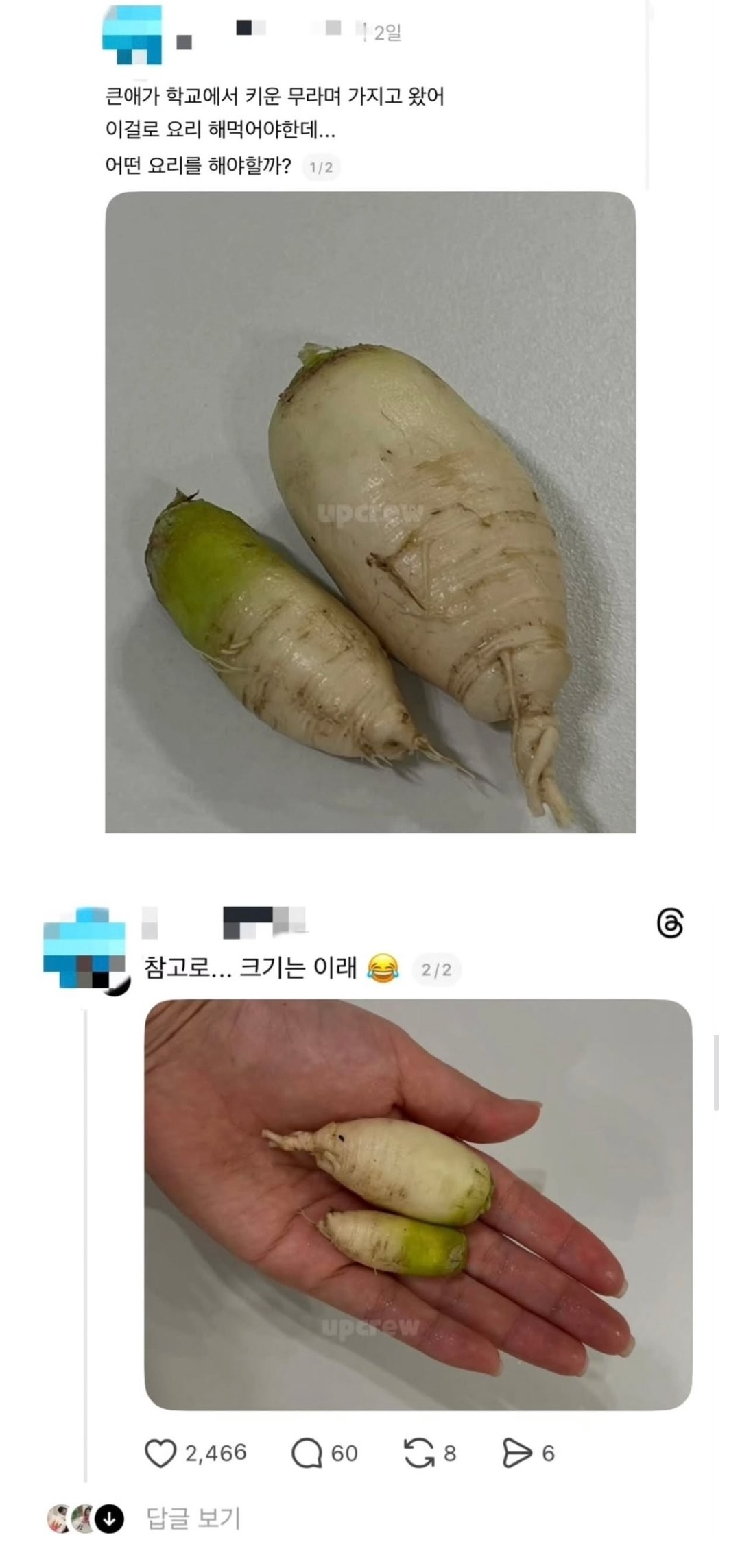 큰 애가 학교에서 키운 무라는데 어떻게 요리하냐.jpg