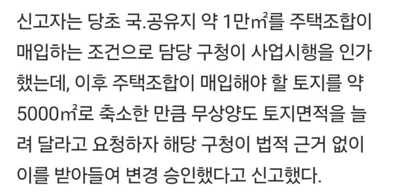 국·공유지 10,000㎡를 매입하는 조건으로 사업 인가를 받았는데