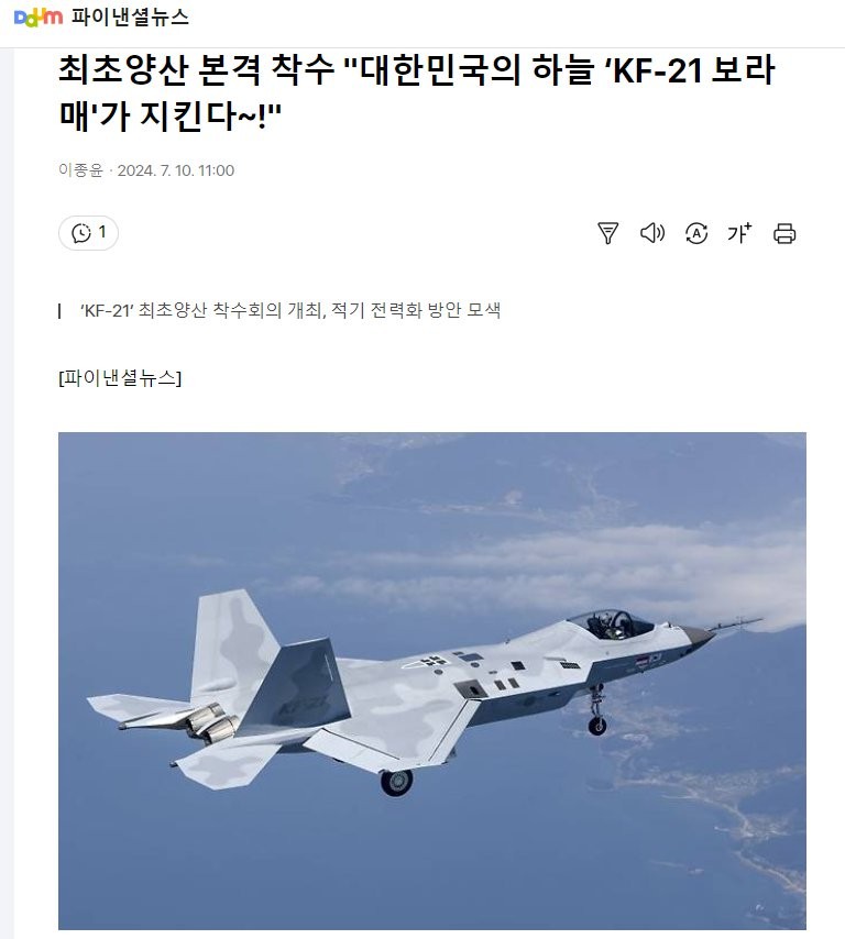 KF-21은 일단 2가지 버전으로 만드는데1. 중무장한 준스텔스기2. 스텔스기 (F35급) 지금 양산 시작하는 것은 '중무장한 준스텔스기'이고몇년 안에 버전2인 '스텔스기 (F35급)'도 양산 시작될 듯. (영국, 사우디 등 여러나라에서 KF-21 도입을 원해서 협상 중.)