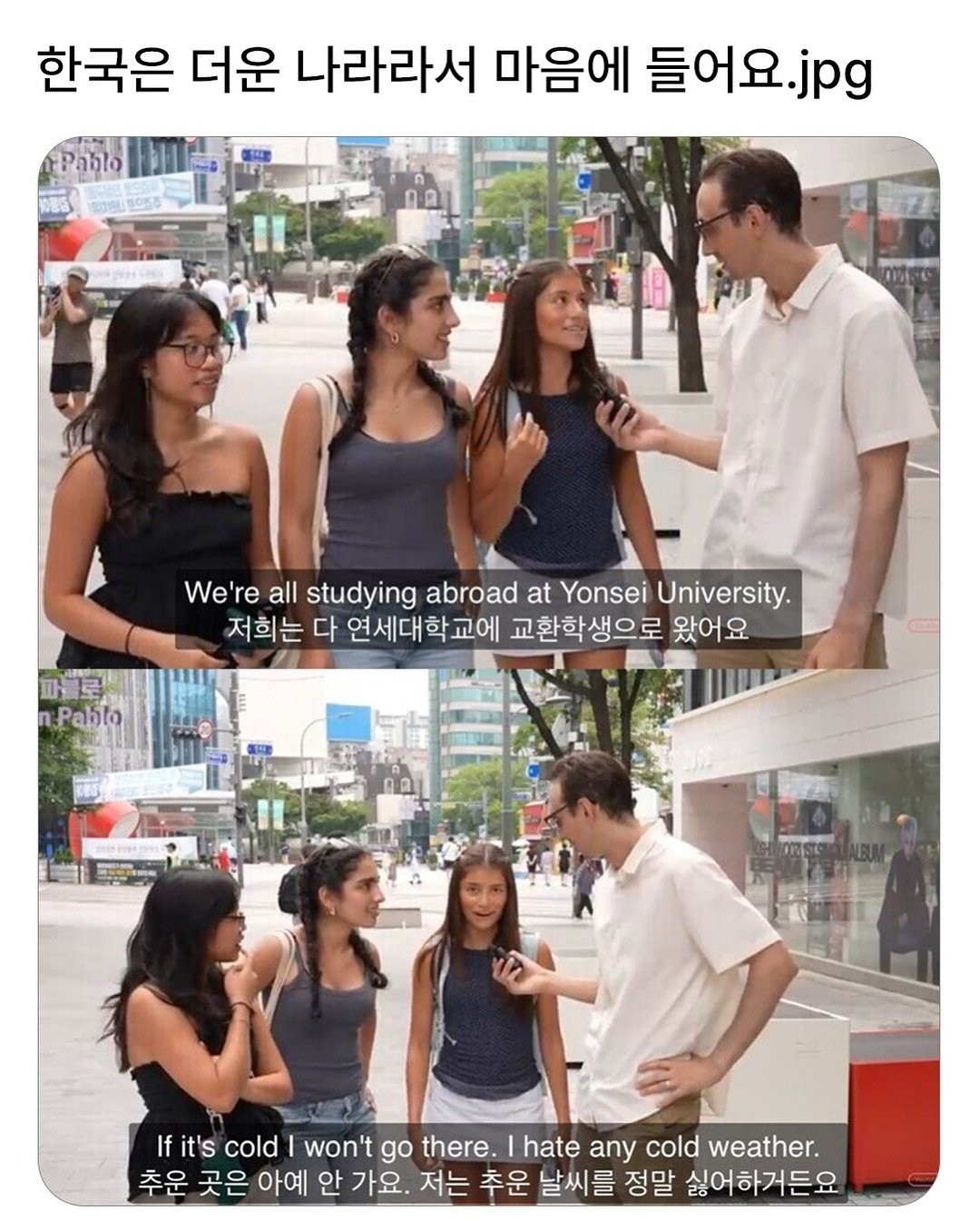 한국이 더운 나라라서 좋아요