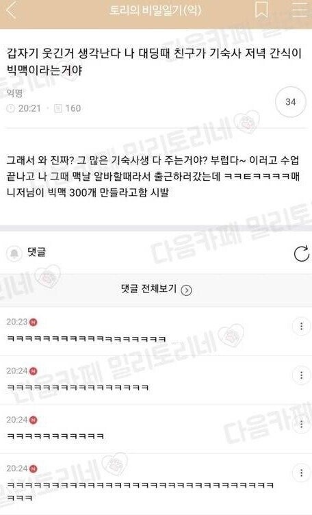 나 대딩때 친구가 기숙사 간식이 빅맥이라는거야