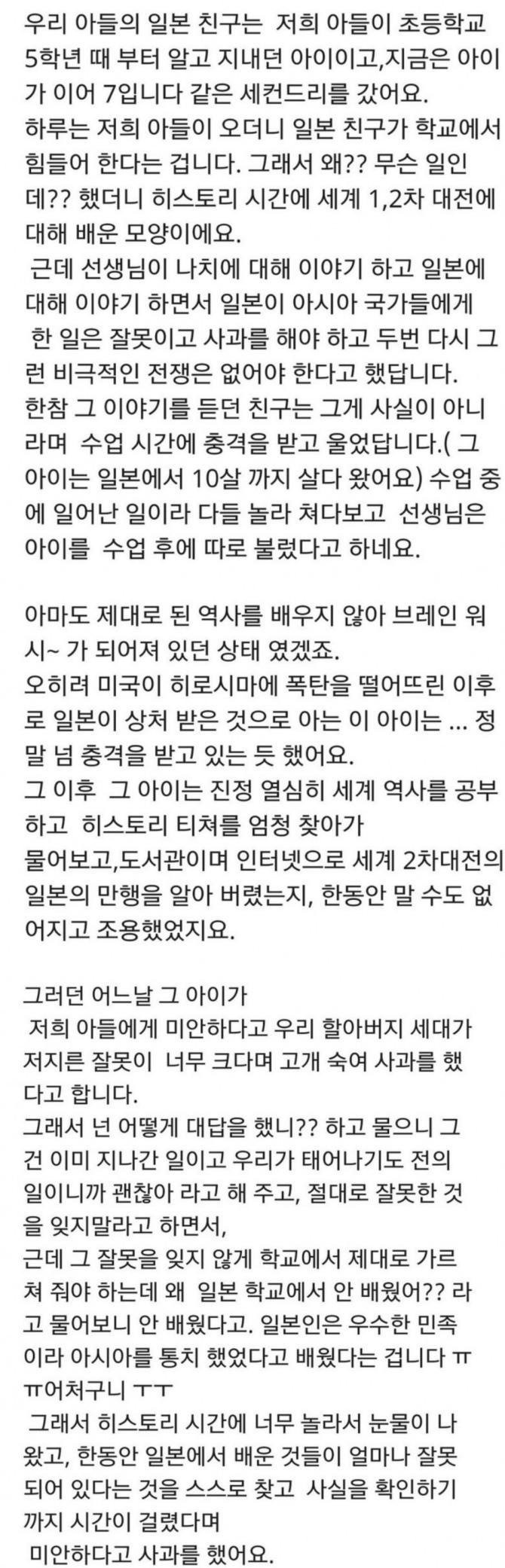 (일본은 학교에서 과거 일본의 침략 사실을 잘 안가르침.)