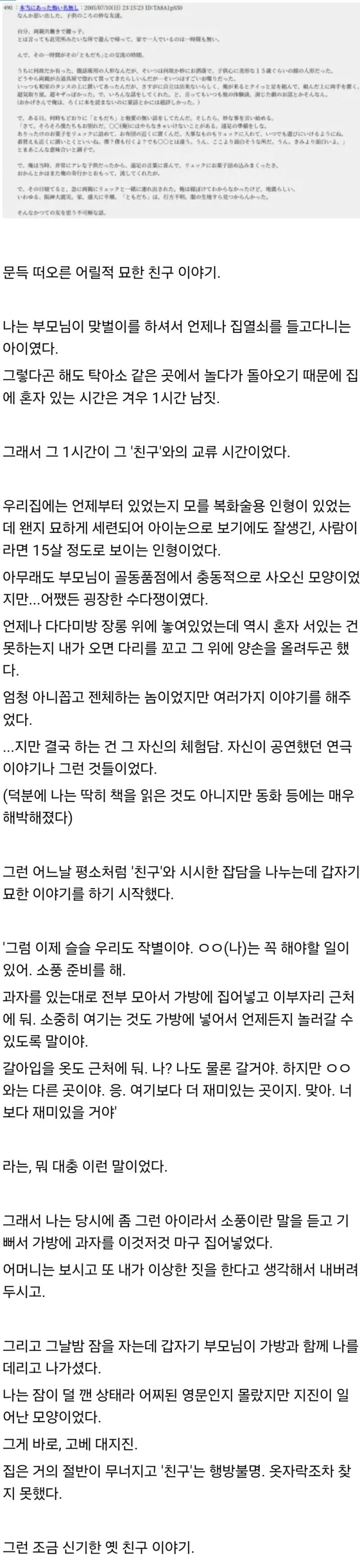 어릴적에 사귀었던 비밀 친구 이야기