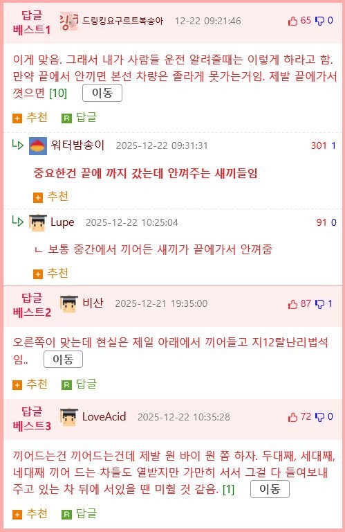 합류 구간 끝까지 가서 차례차례 합류하기. (짤에서 오른쪽 방식)