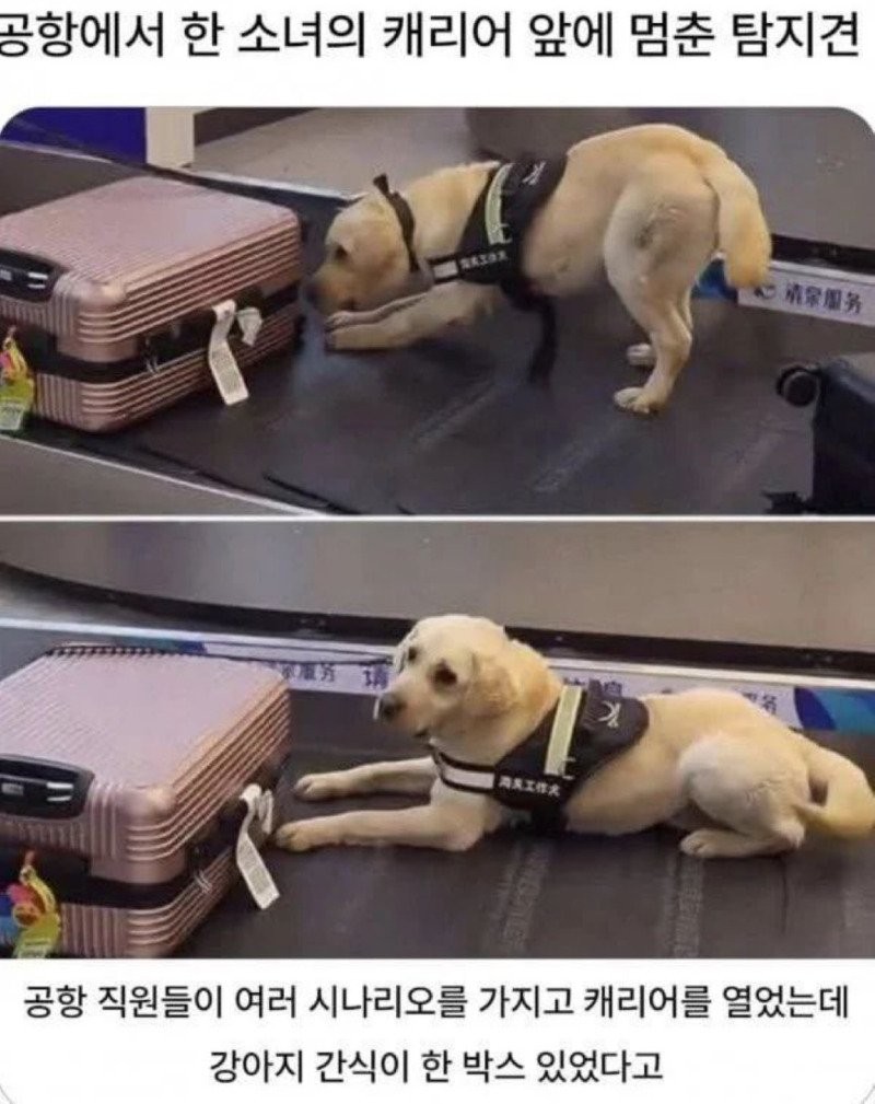 공항탐지견 - 이가방이예요. 빨. 빨리 여세요