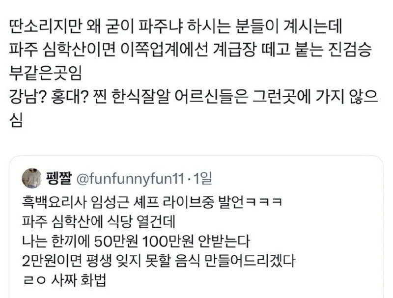 임성근셰프가 굳이 파주에 식당을 내려는 이유