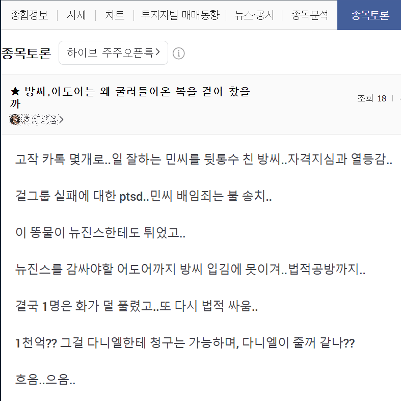 하이브 방씨,어도어는 왜 굴러들어온 복을 걷어 찼을까