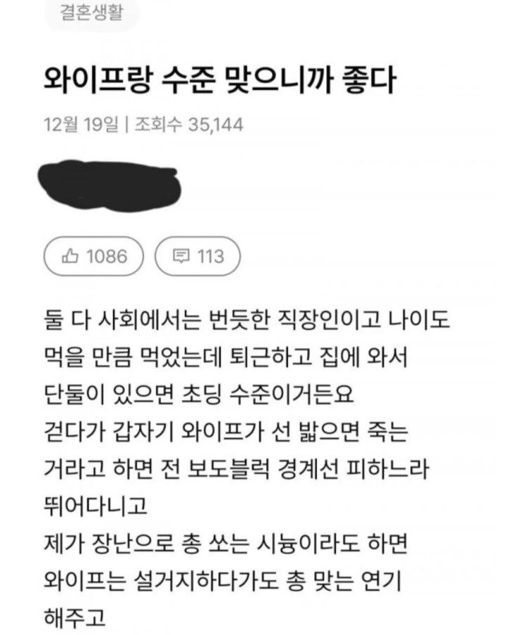 와이프랑 수준 맞으니까 좋다