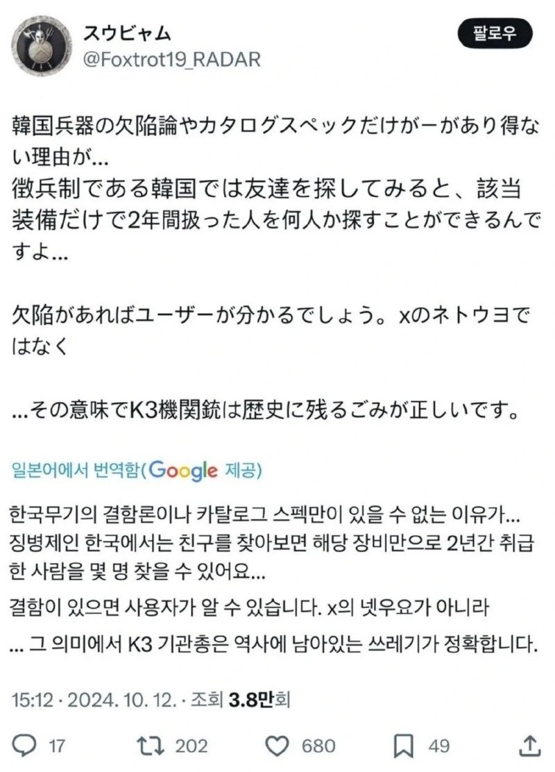 한국무기는 쓰레기라고 까는 일본인.jpg