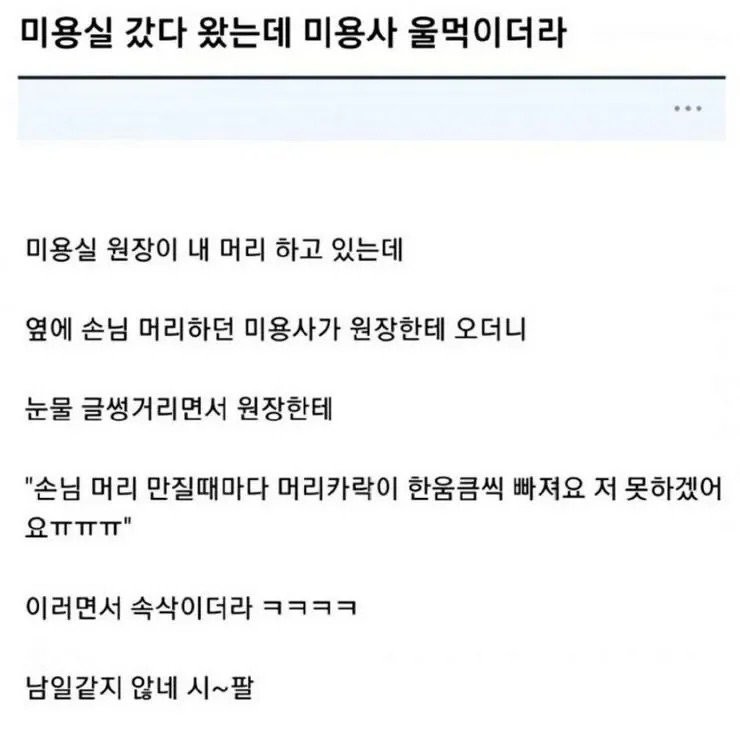 미용실 갔다가 우는 미용사 봤다