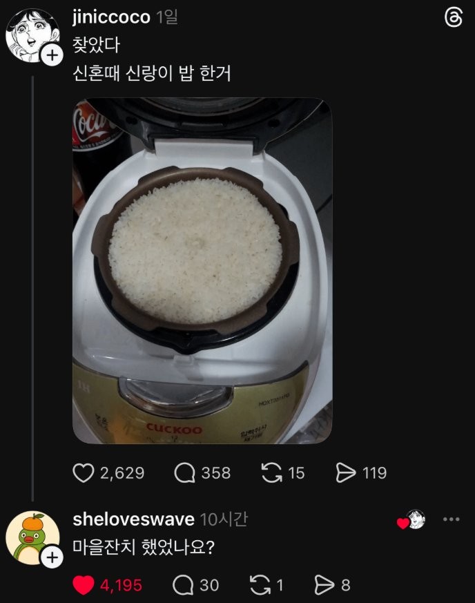 신혼 때 신랑이 밥한 거 찾았다