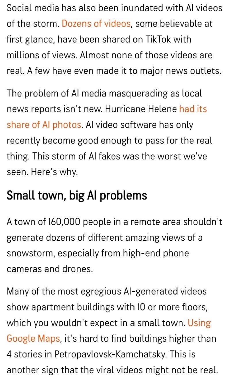 영어기사제목: 'Snow buries Russia's Kamchatka Peninsula, but don't believe the AI videos'