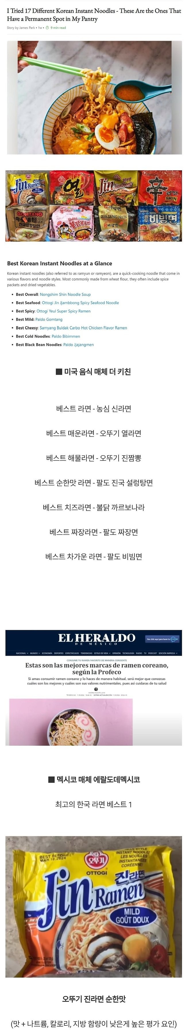해외에서 꼽은 최고의 한국 라면