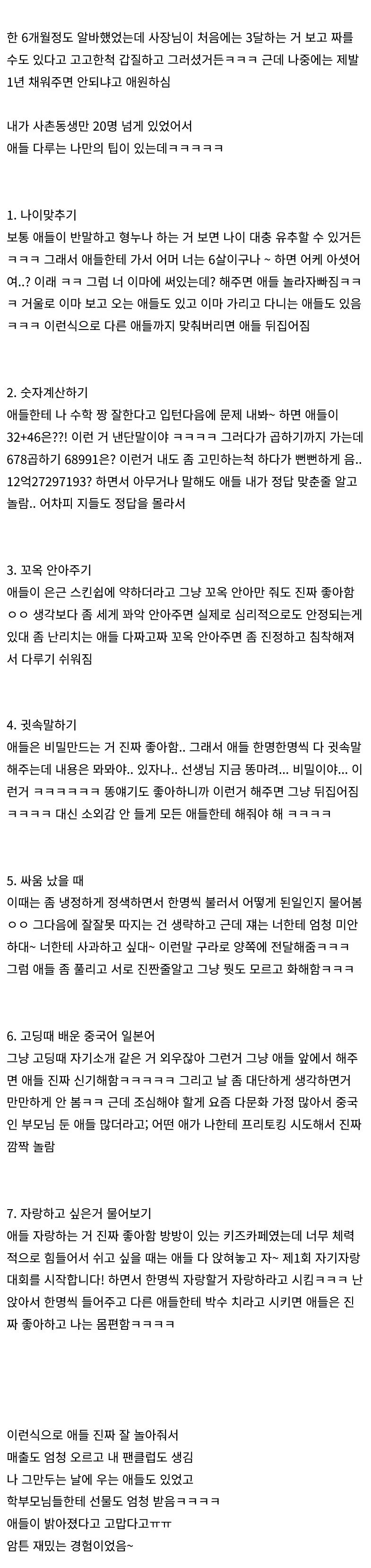 키즈 까페 사장이 제발 그만두지 말라고 붙잡았다는 알바.jpg