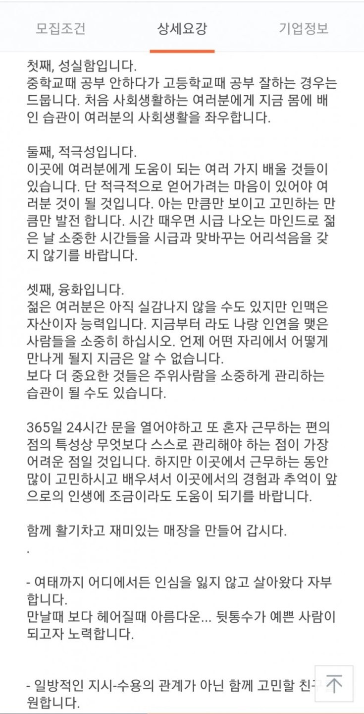 정성가득 편의점 구인광고 글