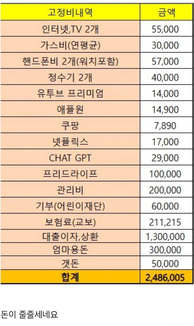 밥하고 옷은...? 아 고정비구나