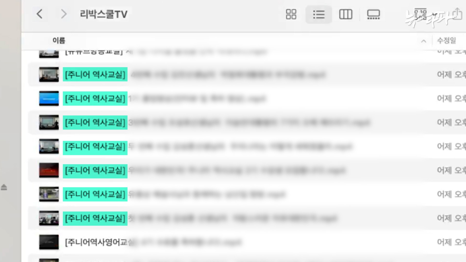 뉴스타파가 지난달 31일에 확보한 리박스쿨 '주니어 역사교실' 영상 목록.