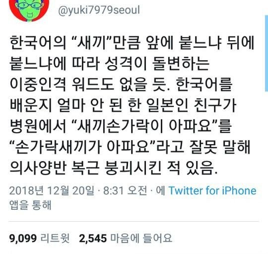 의사선생님 새끼손가락이 아파요