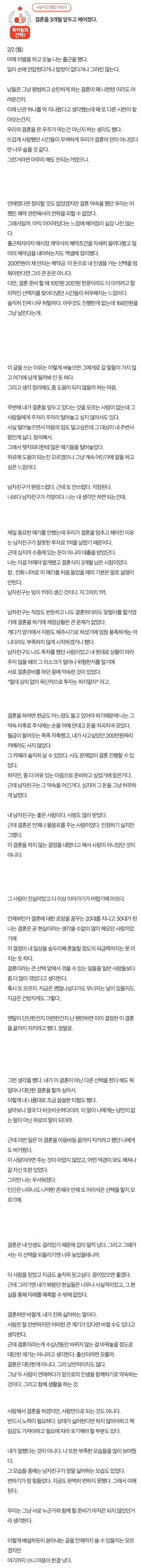 결혼을 3개월 앞두고 헤어졌다