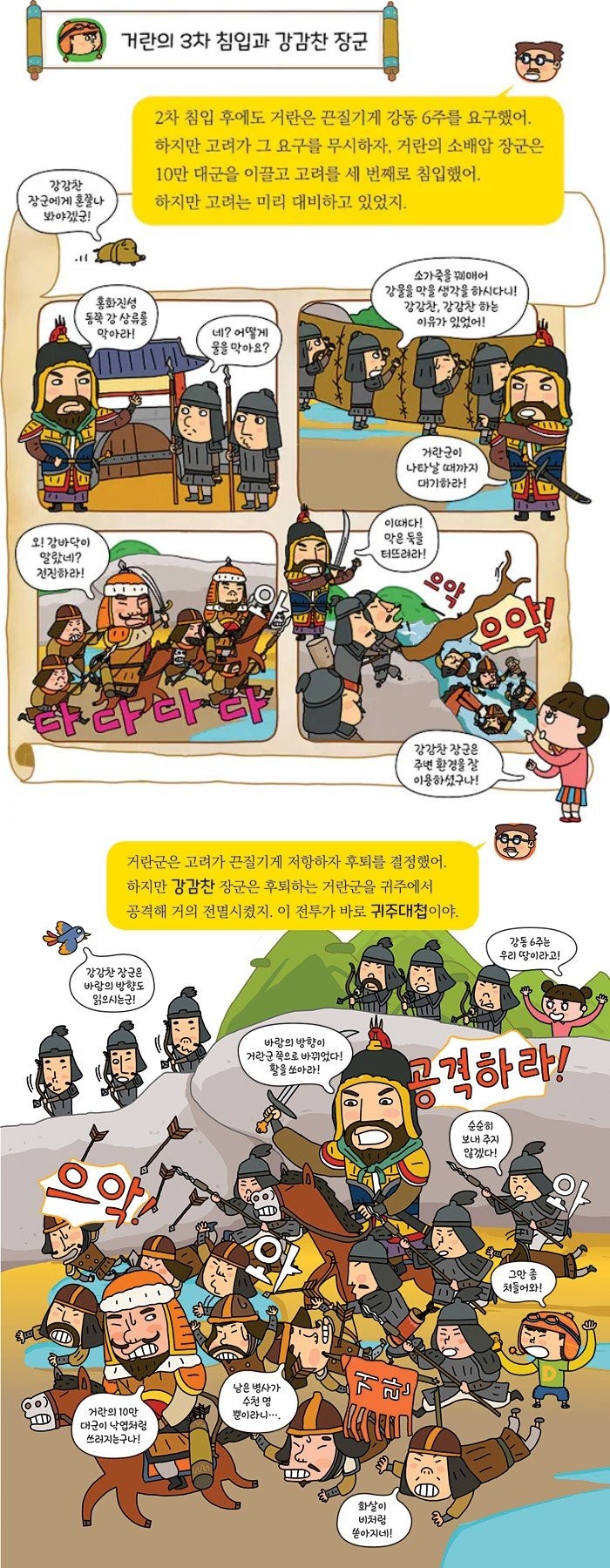 귀주대첩: 넓은 벌판에서 지원군과 바람의 도움으로 거란군을 전멸시킨 정면 대결.