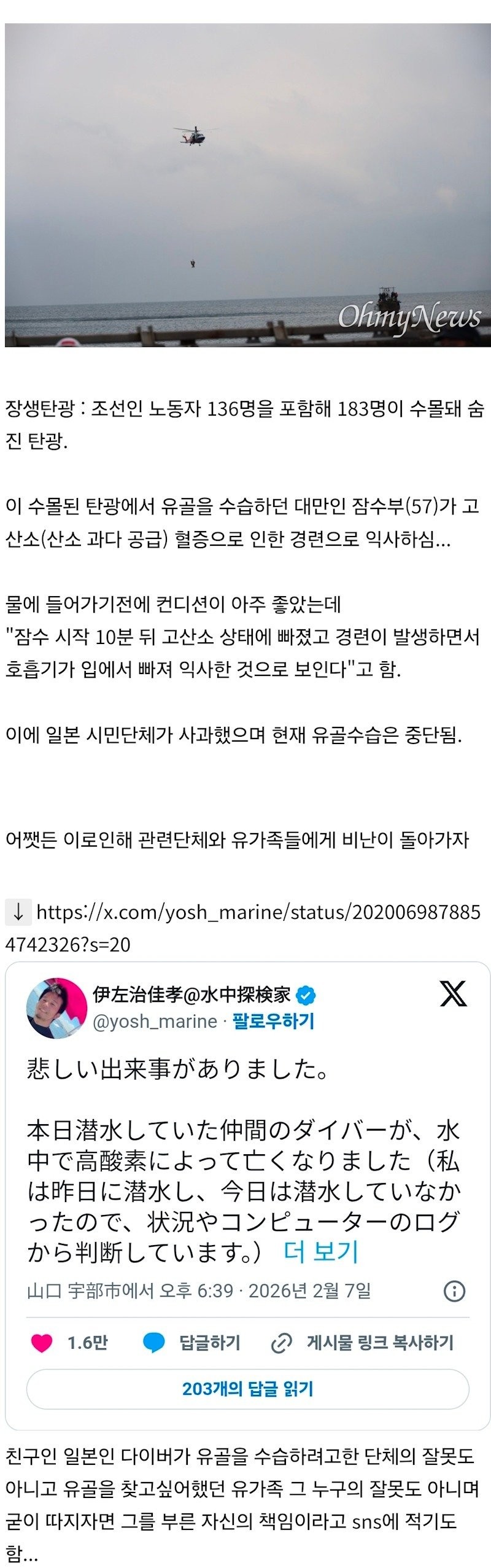 위의 일본인 다이버의 트윗 전문 (파파고번역)