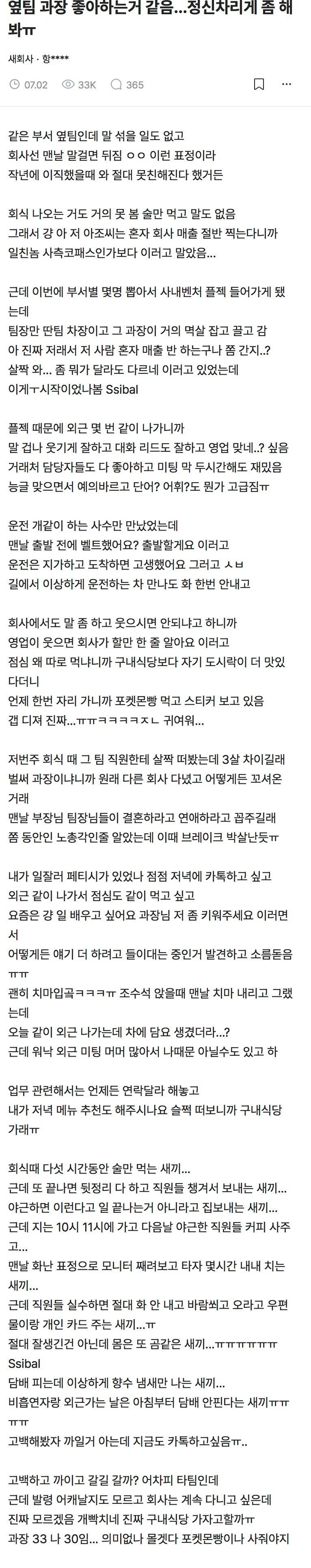 옆팀 과장 좋아하는 것 같음