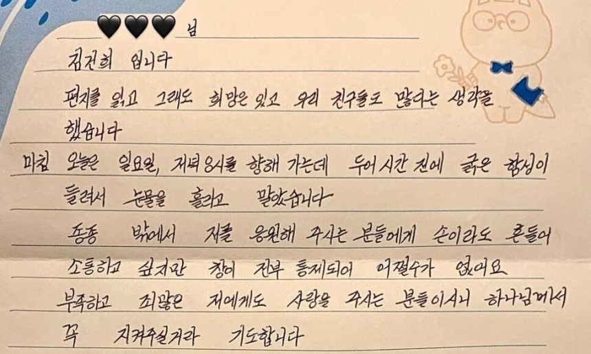“죄 많은 제게…” 구치소 김건희, 손편지로 지지자에게 답장