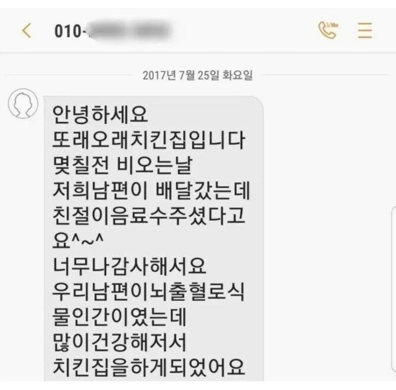 어느 치킨집 사장님의 문자메세지