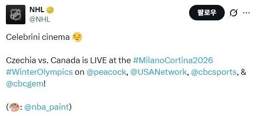 올림픽 영상올리면 삭제되자 NHL 공식계정이 한 행동
