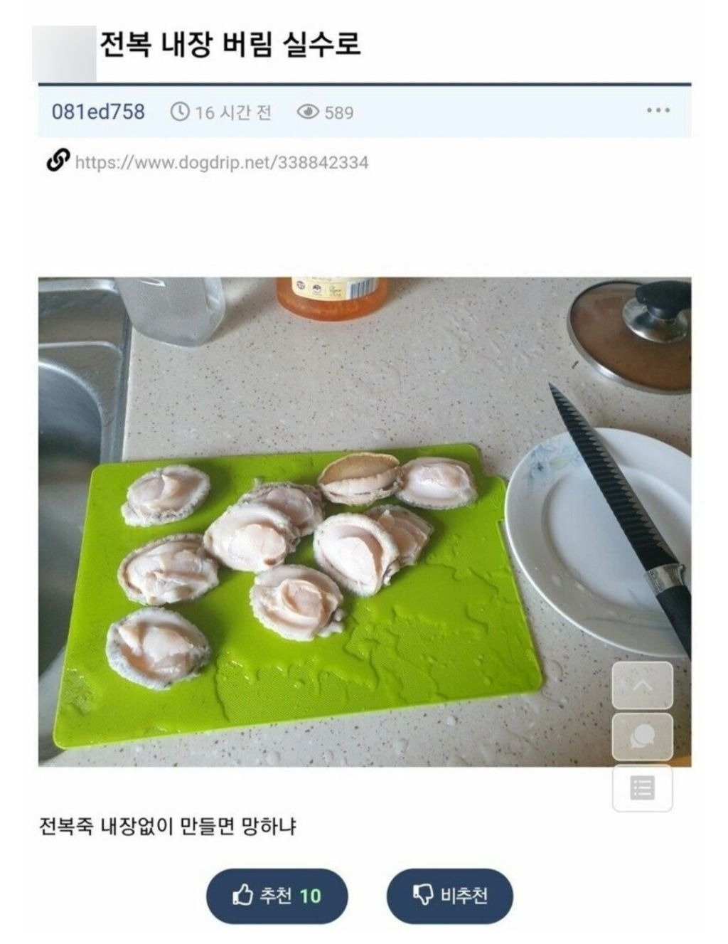 전복죽 만들려는데 실수로 내장 버림