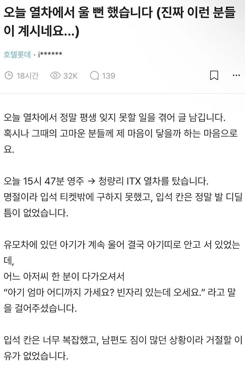 설 명절에 열차에서 울 뻔 했습니다