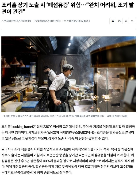 대량 음식 하는 학교나 군대 이런 곳은 걍 폐암 걸리기 딱 좋은 거라..