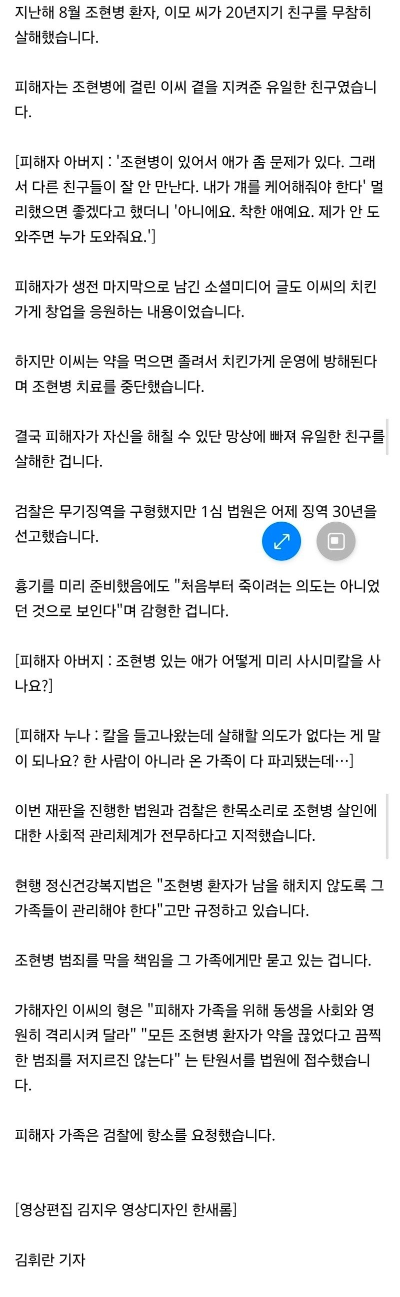 "먹으면 졸려" 조현병 약 끊고 20년지기 '유일한 친구' 살해…징역 30년