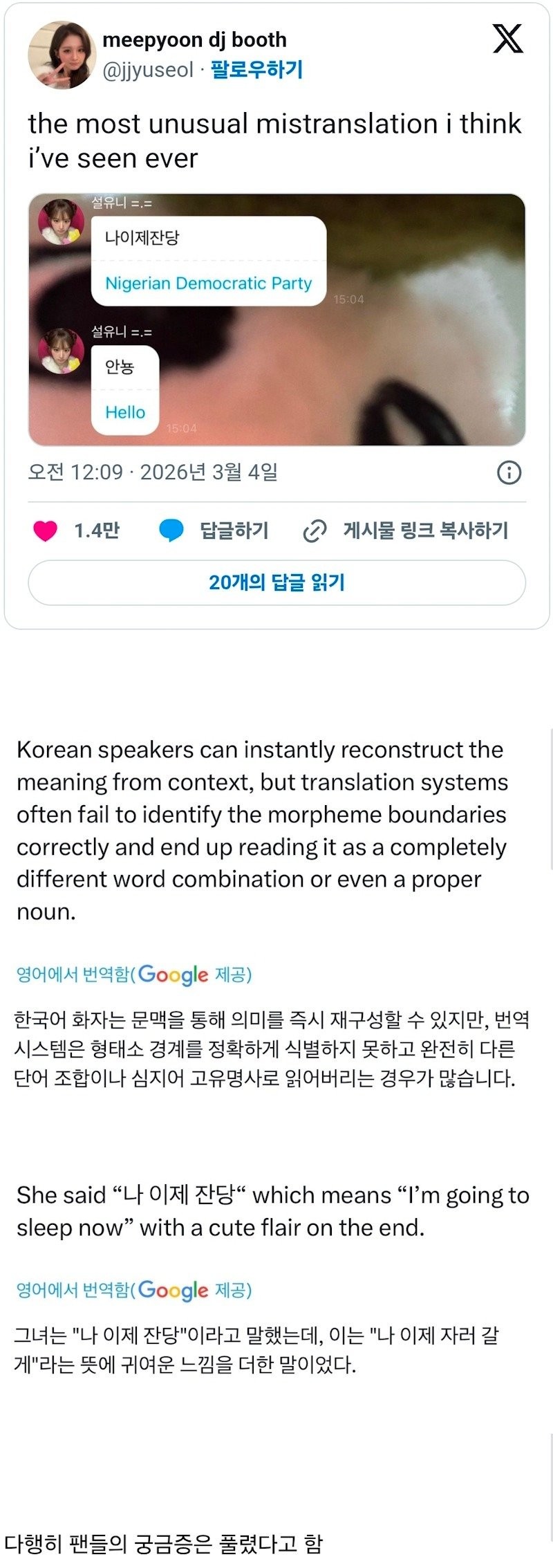 외국팬 : 내가 본 버블 오역 중 가장 특이해.jpg
