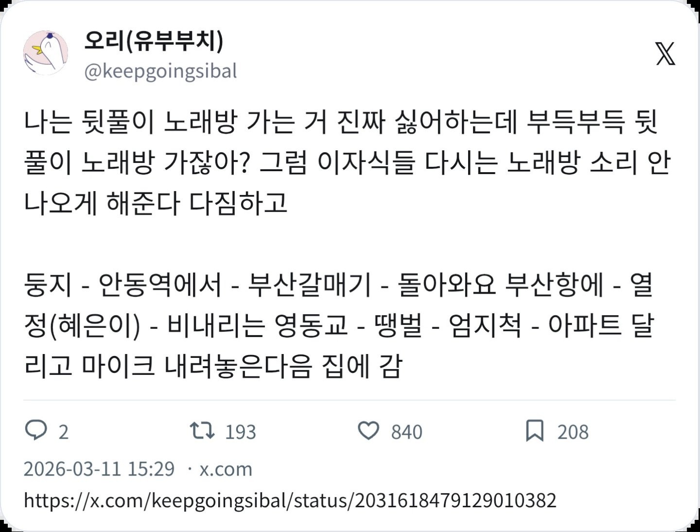 뒷풀이 노래방 가기 싫어서 선곡 일부로 조짐