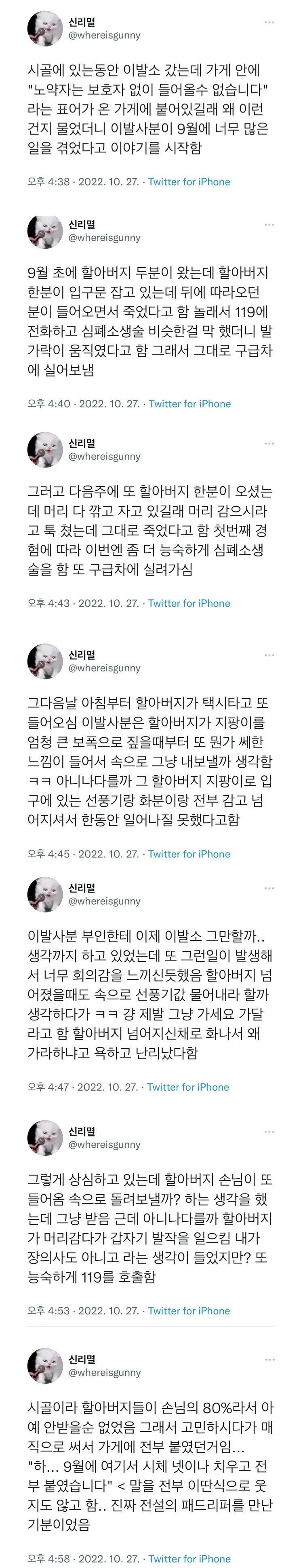 시골 이발소에 갔는데 노약자는 보호자 없이 못들어온대