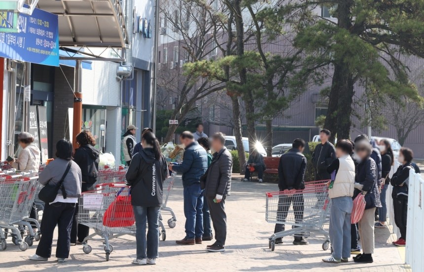 오전 10시 개점을 앞둔 매장 앞에는 장을 보러 온 시민 20여명이 줄지어 서 있었다.