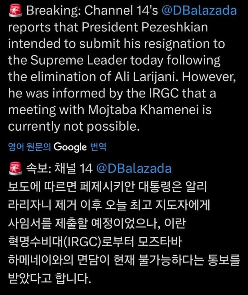 문제는 사임하려면 최고지도자 모즈타바 하메네이