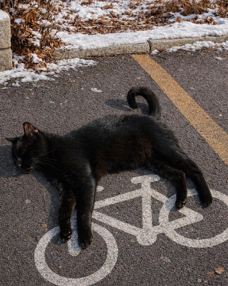 자면서 자전거 타는 고양이 발견